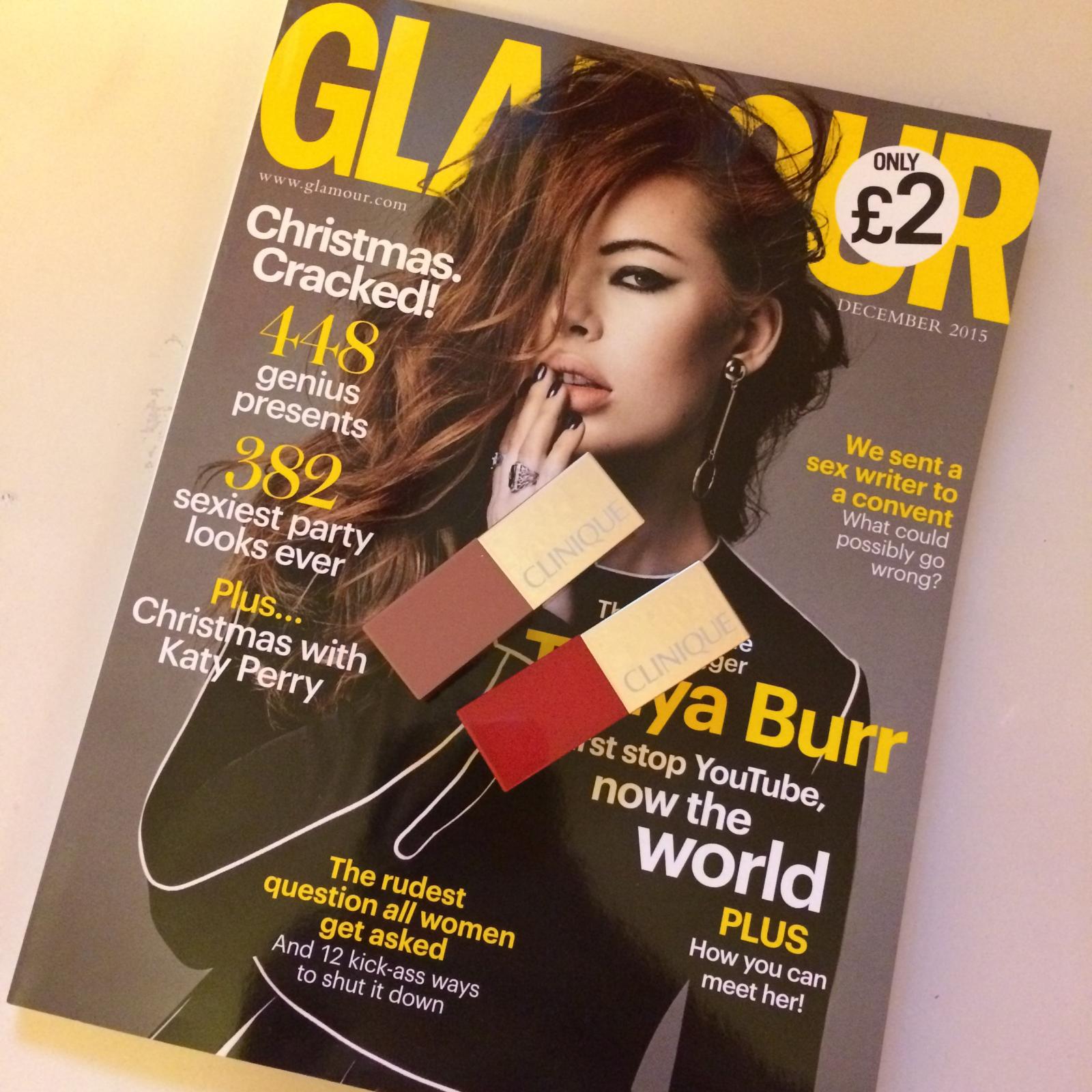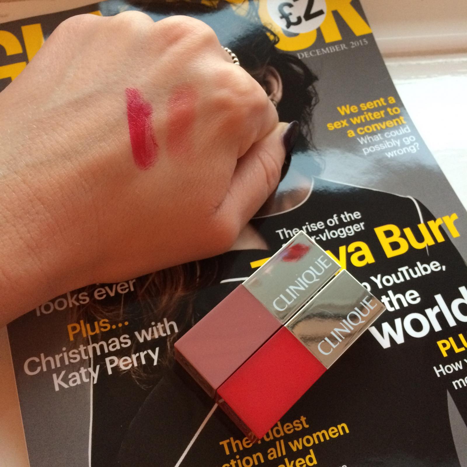 I was so excited to see Clinique lipsticks on the front of Glamour this month because 1. I have a *bit* of a lipstick obsession (OK a huge one) and 2. It’s £2 for the magazine and the lipstick!!
